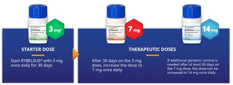 RYBELSUS tablets (7 mg or 14mg) are a prescription medication used in conjunction with diet and physical activity to help improve blood sugar levels (glucose).